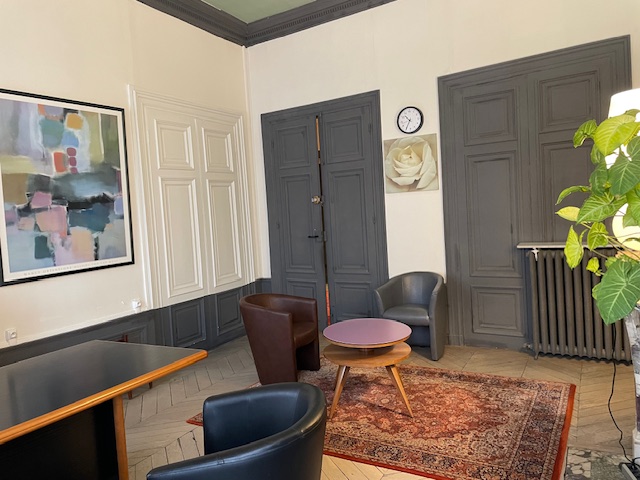 DISPONIBLE deux grands bureaux de 29 M2 environ (+ la salle de soin attenante avec lavabo), desservi par un grand hall de réception. Grandes fenêtres avec double vitrage, 2 placards, climatisation et interphone, grande cheminée, plafond avec frise, parquet chêne au sol.