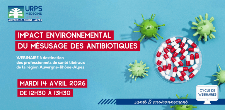Dans le cadre du cycle de webinaires Santé & Environnement dédiés aux professionnels de santé libéraux, l’URPS propose un webinaire « Impact environnemental du mésusage des antibiotiques » le mardi 14 avril de 12h30 à 13h30